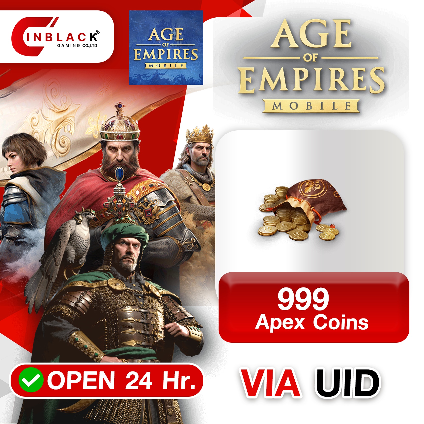 Age of Empires Mobile (GL) - 999 Apex Coins 9.99$ Top up UID By Inblack Open 24 hr.