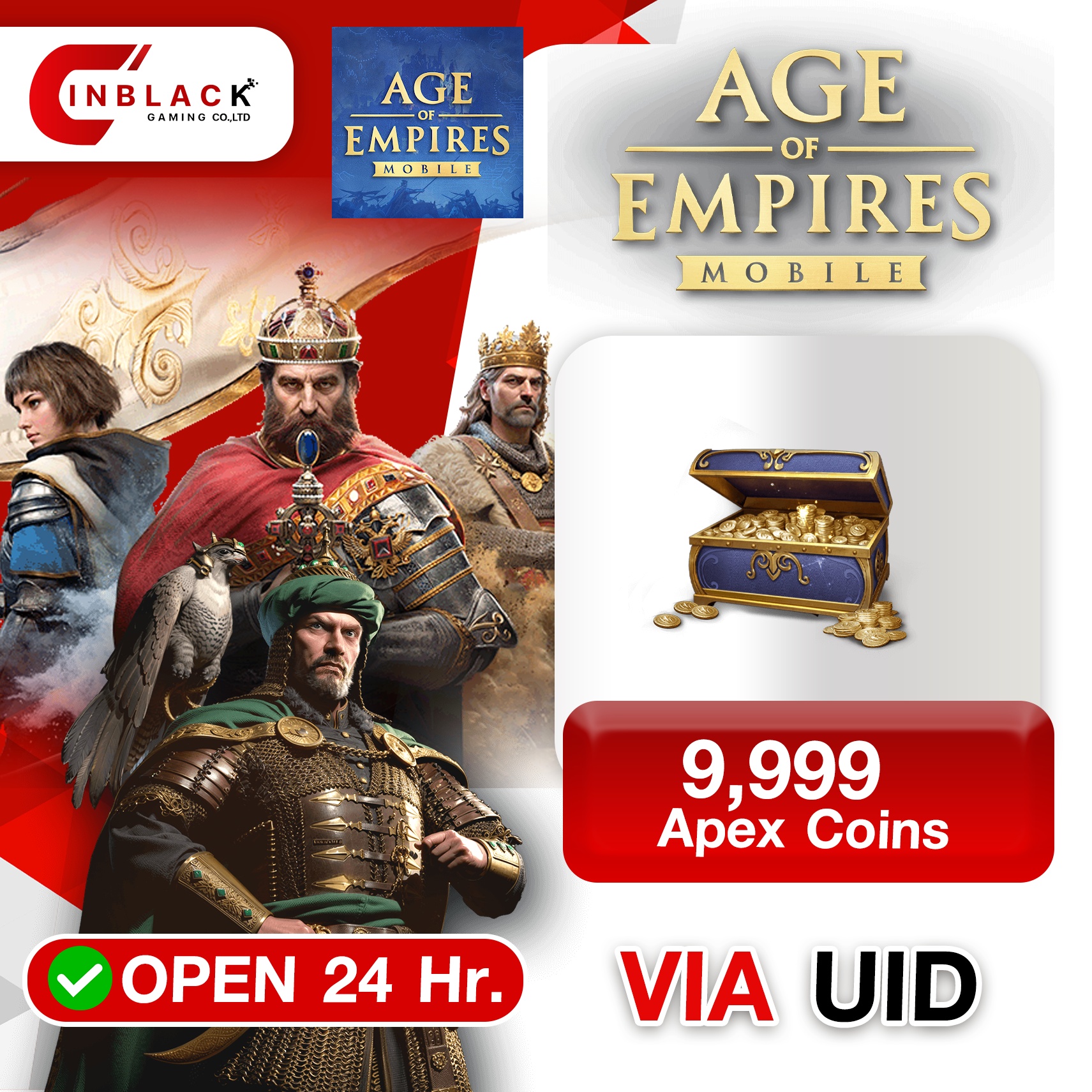 Age of Empires Mobile (GL) - 9999 Apex Coins 99.99$ Top up UID By Inblack Open 24 hr.