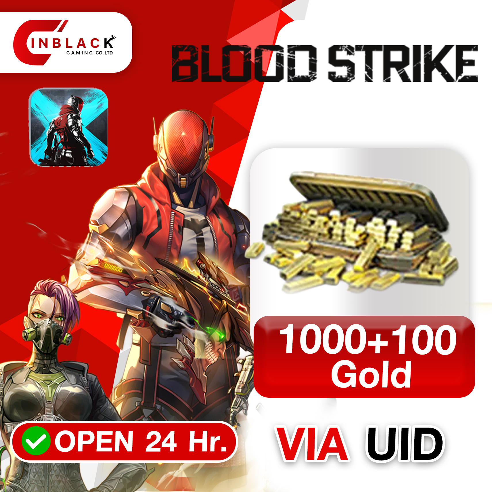 BLOOD STRIKE(GL) - 1000+100 Gold 9.99$ Top up UID by Inblackm open 24 hr.
