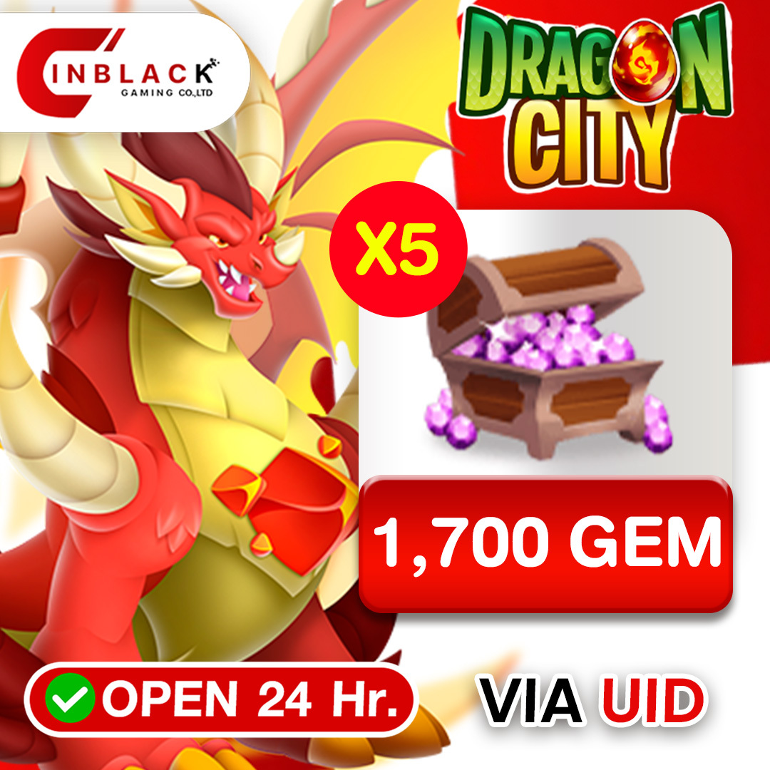 Dragon City - 8500 (1700 x 5 ) GEM Top up User ID by Inblackm Open 24 hr.