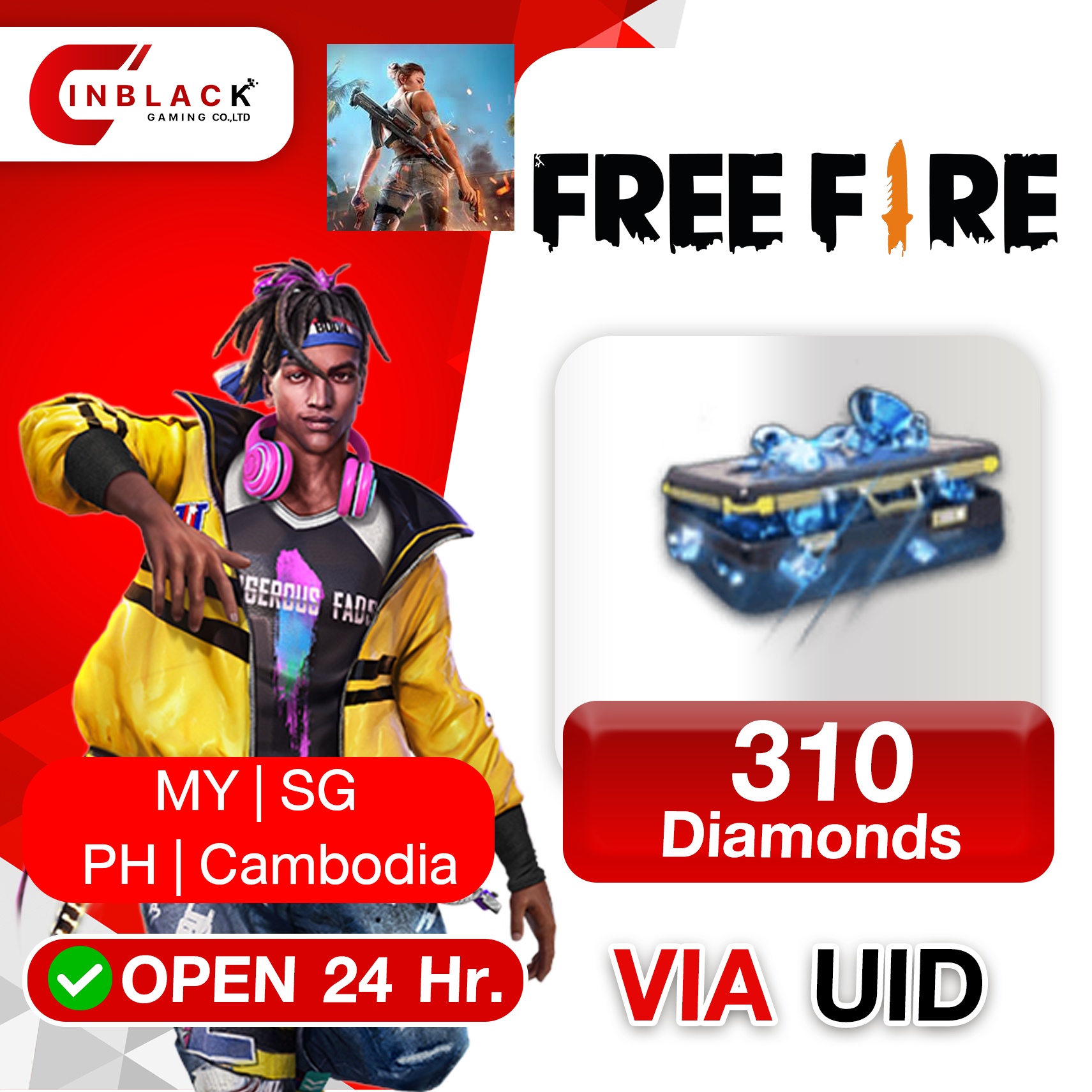 Free Fire (MY | SG | PH | Cambodia) - 310 Diamond Top up UID By Inblackm Open 24 hr.