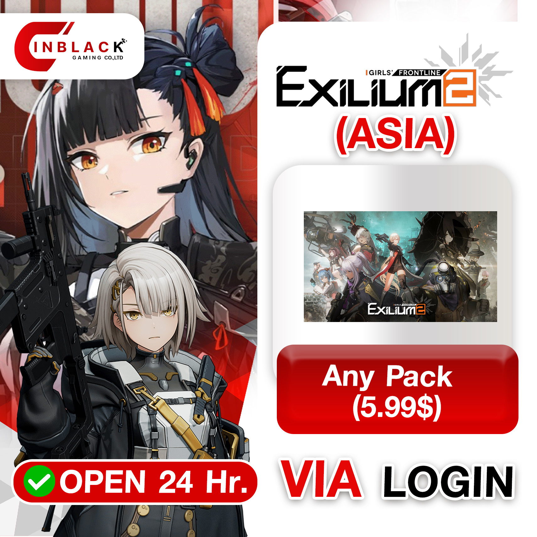 Girls' Frontline 2: Exilium (Asia) - Any Pack (5.99$) Top up via Login by Inblackm open 24 hr.