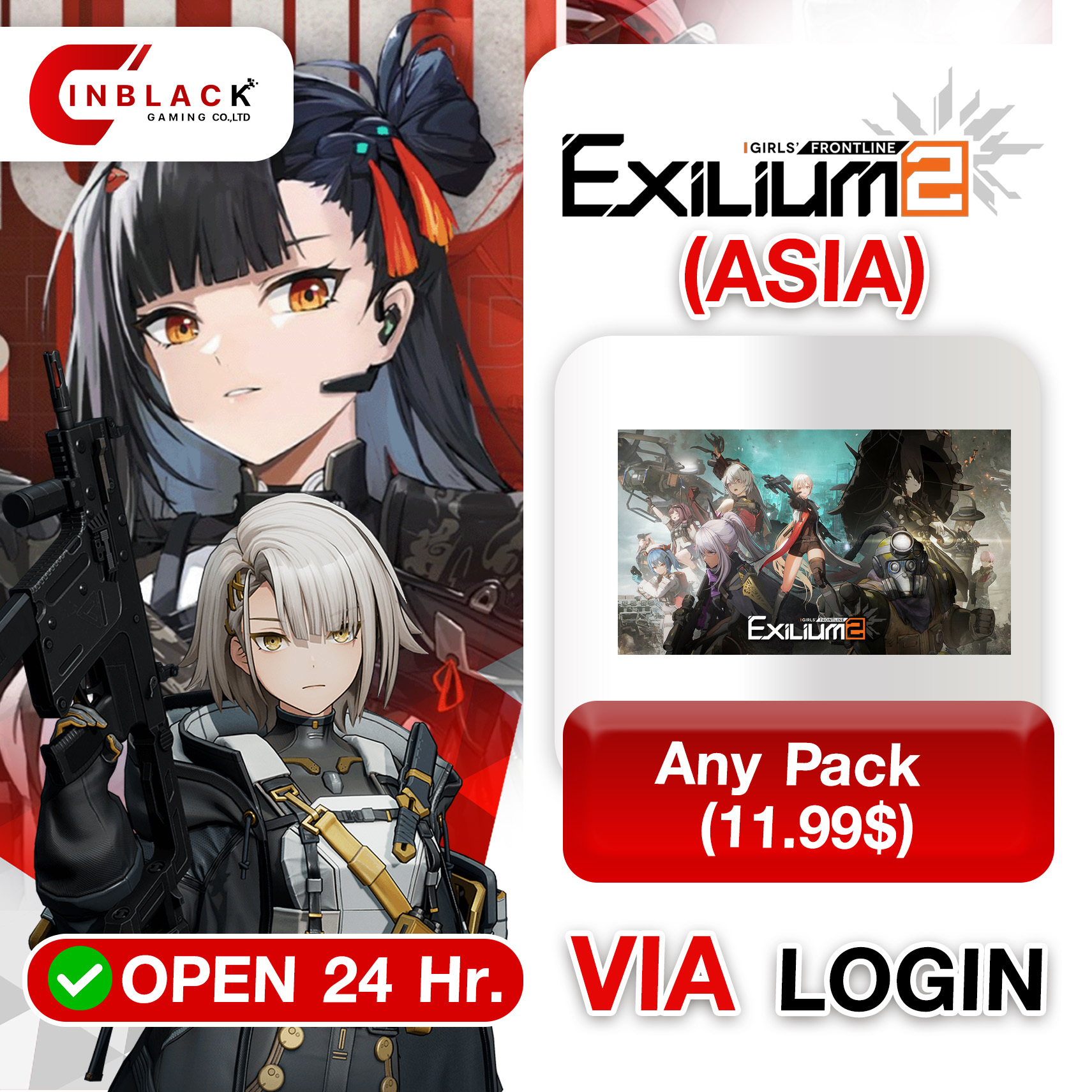 Girls' Frontline 2: Exilium (Asia) - Any Pack (11.99$) Top up via Login by Inblackm open 24 hr.