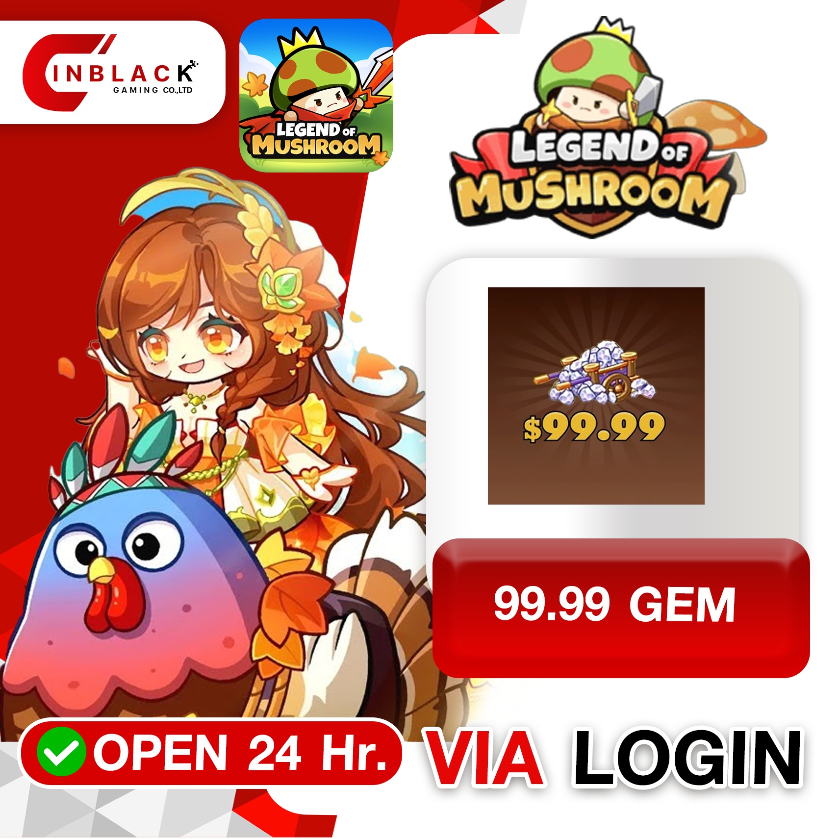Legend of Mushroom (GL) - 99.99 GEM Top up Via Official LOGIN By Inblack open 24 hr.
