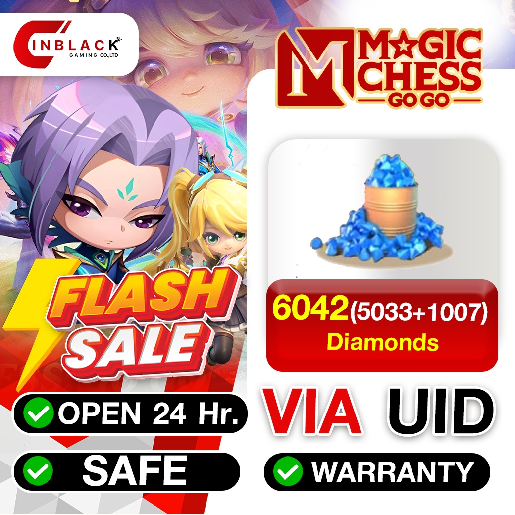 Magic Chess: Go Go - 6042 ( 5035+1007 ) Diamonds via UID by Inblackm open 24 hr.