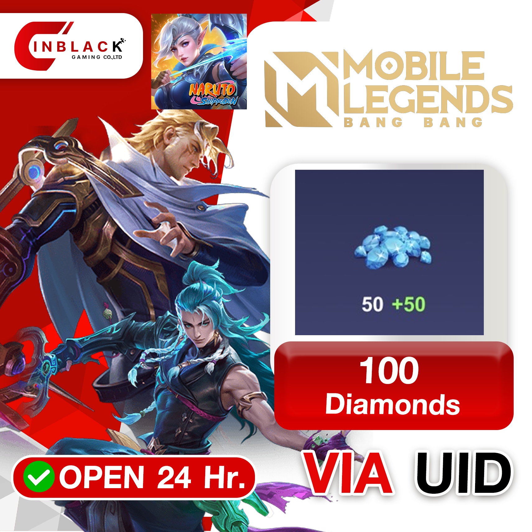Mobile Legends: Bang Bang (Philippines) - 100 Diamonds ( 50+50 First Recharge ) Top up UID By inblack Open 24 hr.
