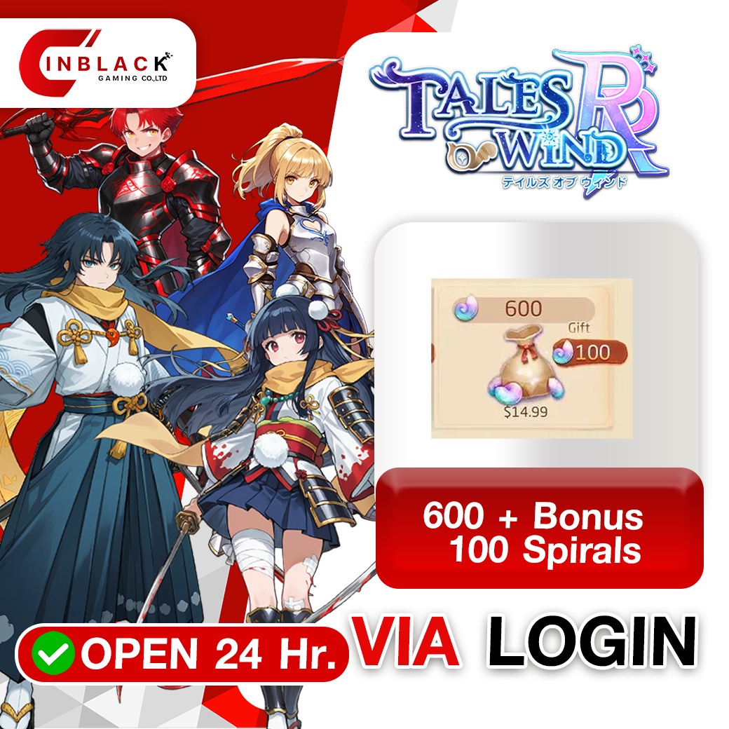 TALES OF WIND: RADIANT REBIRTH - 600 + Bonus 100 Spirals VIA LOGIN BY INBLACKM open 24 hr.