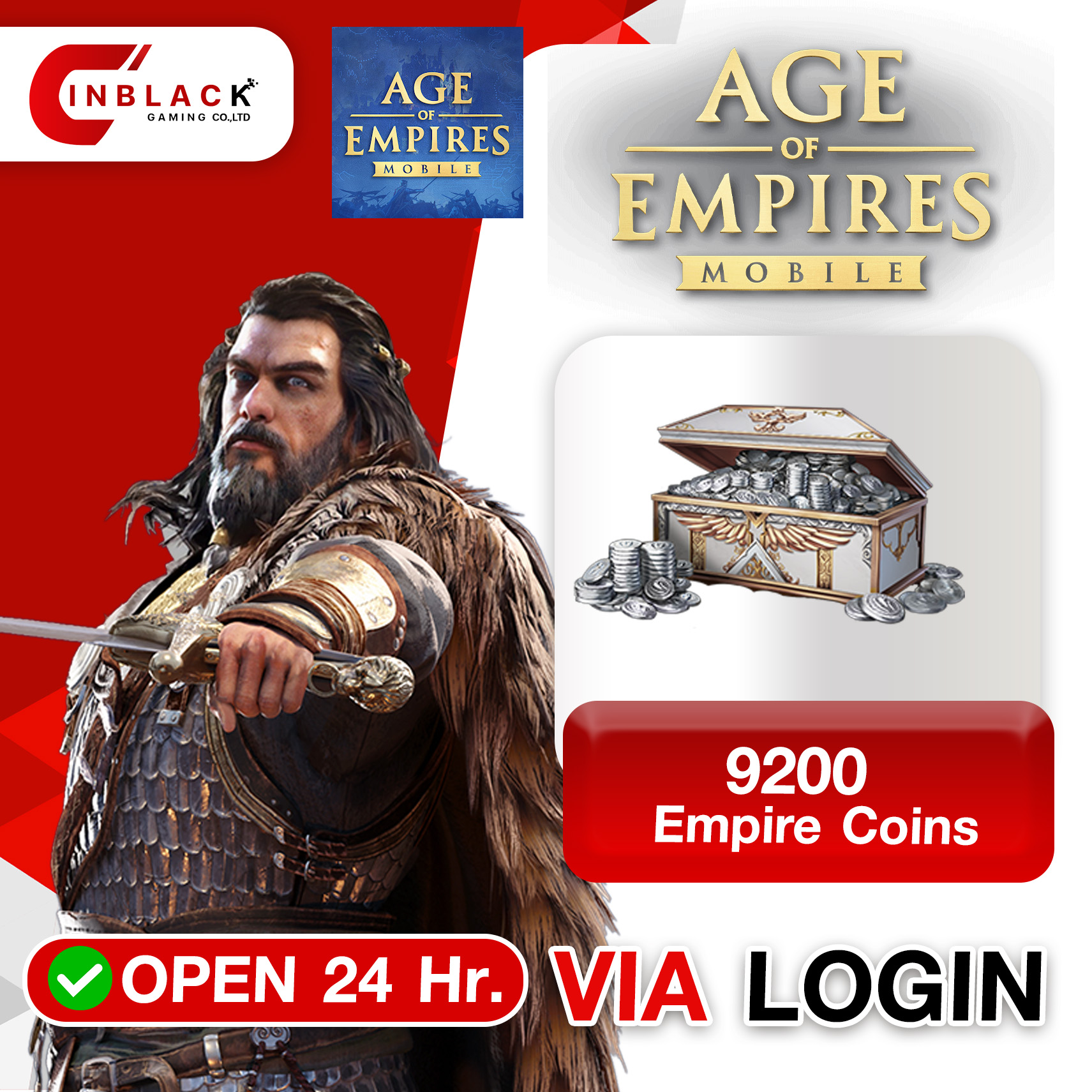 Age of Empires Mobile (GL) - 9200 Empire Coins 19.99$ Top up Via Login By Inblack Open 24 hr.