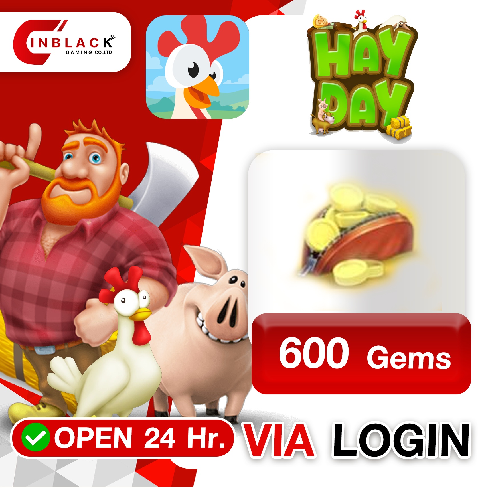 Hay Day - 600 COINS ( 2.99$ ) Top up via LOGIN By Inblack Open 24 hr.