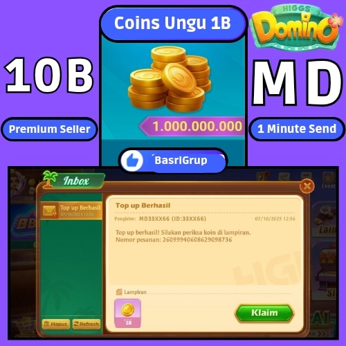 10B Coins Ungu MD - Higgs Domino HDI or Higgs Games Island HGI - Claim Coins INBOX Without Card Exchange - Fastest Delivery & Trusted - BasriGrup