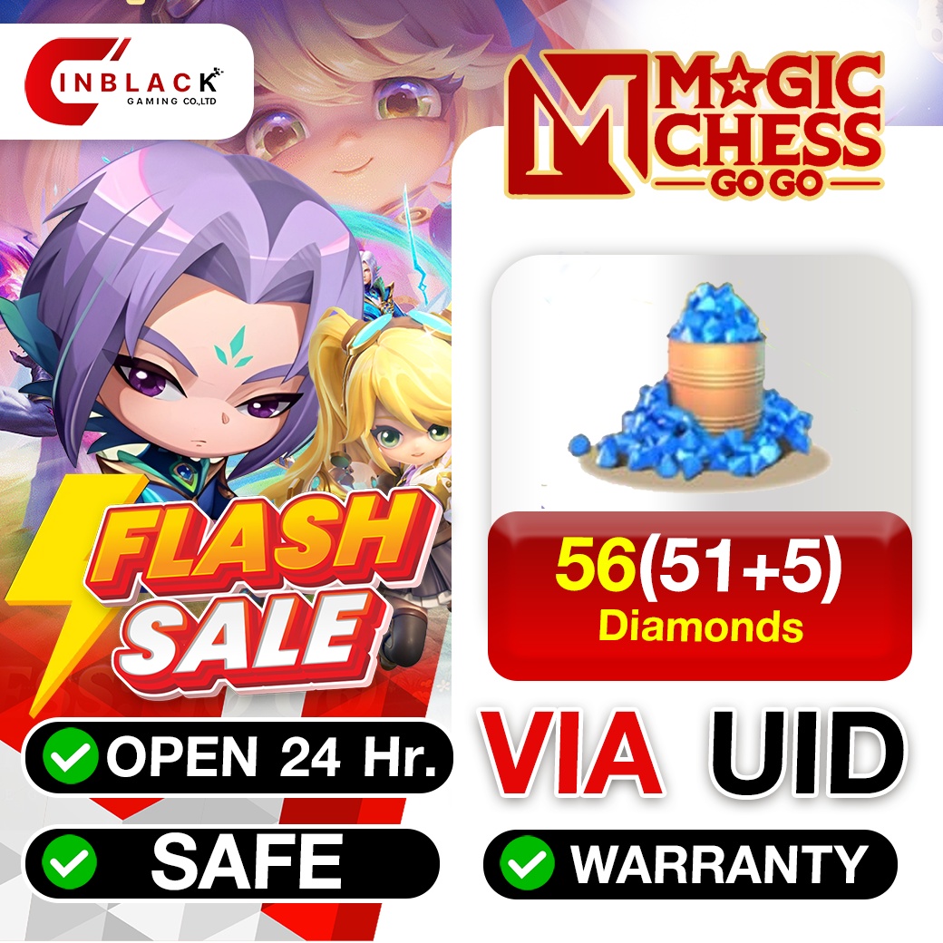 Magic Chess: Go Go - 56 ( 51+5 ) Diamonds via UID by Inblackm open 24 hr.