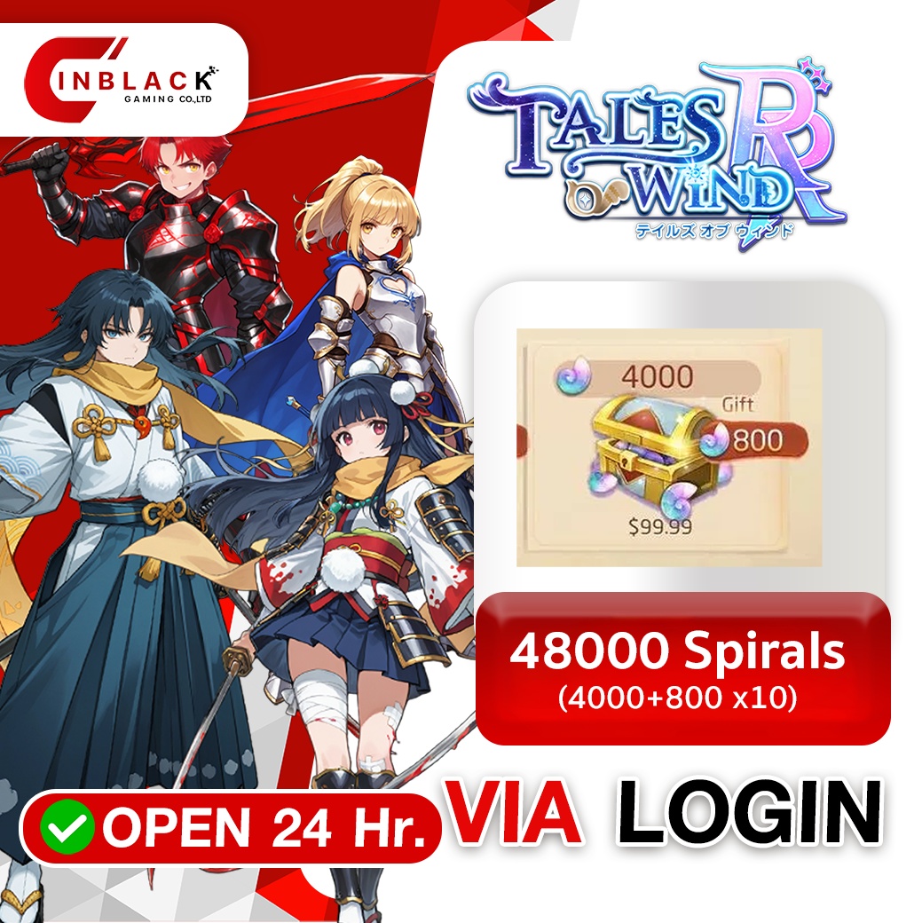 TALES OF WIND : RADIANT REBIRTH - 48000 Spirals (4000+800 x10)999.9$ VIA LOGIN BY INBLACKM open 24 hr.