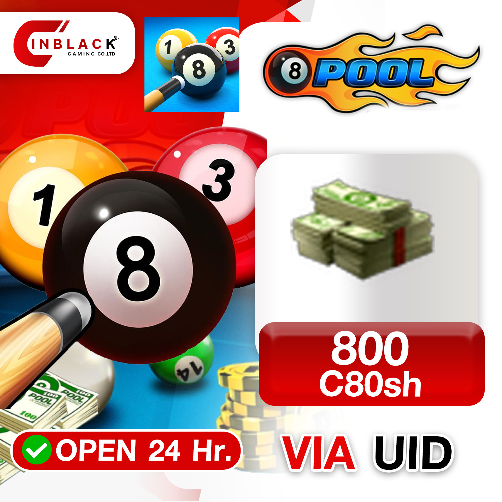 8 Ball Pool (GL) - 800 Cash 34.99$ Top up UID By Inblackm Open 24 hr.