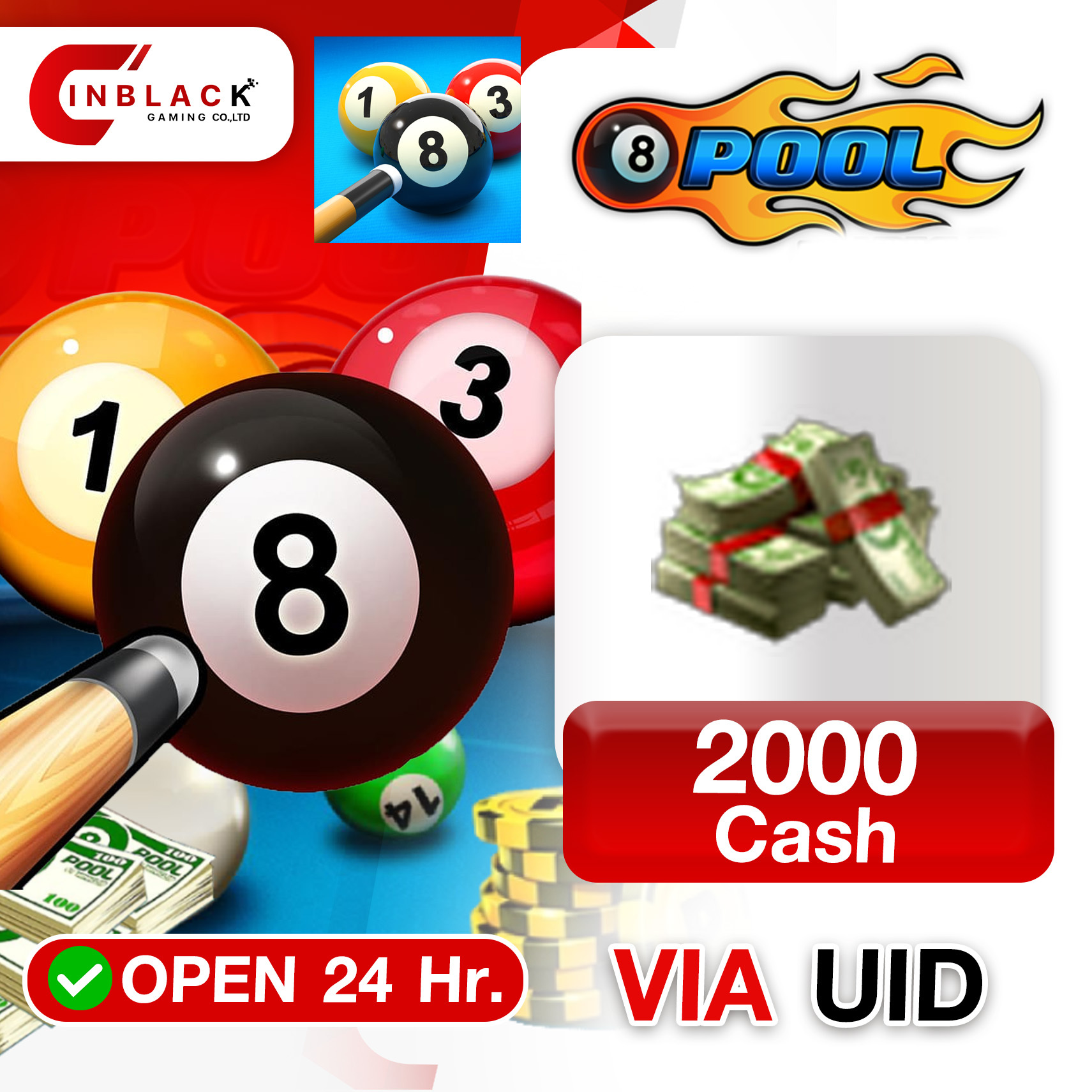 8 Ball Pool (GL) - 2000 Cash 69.99$ Top up UID By Inblackm Open 24 hr.