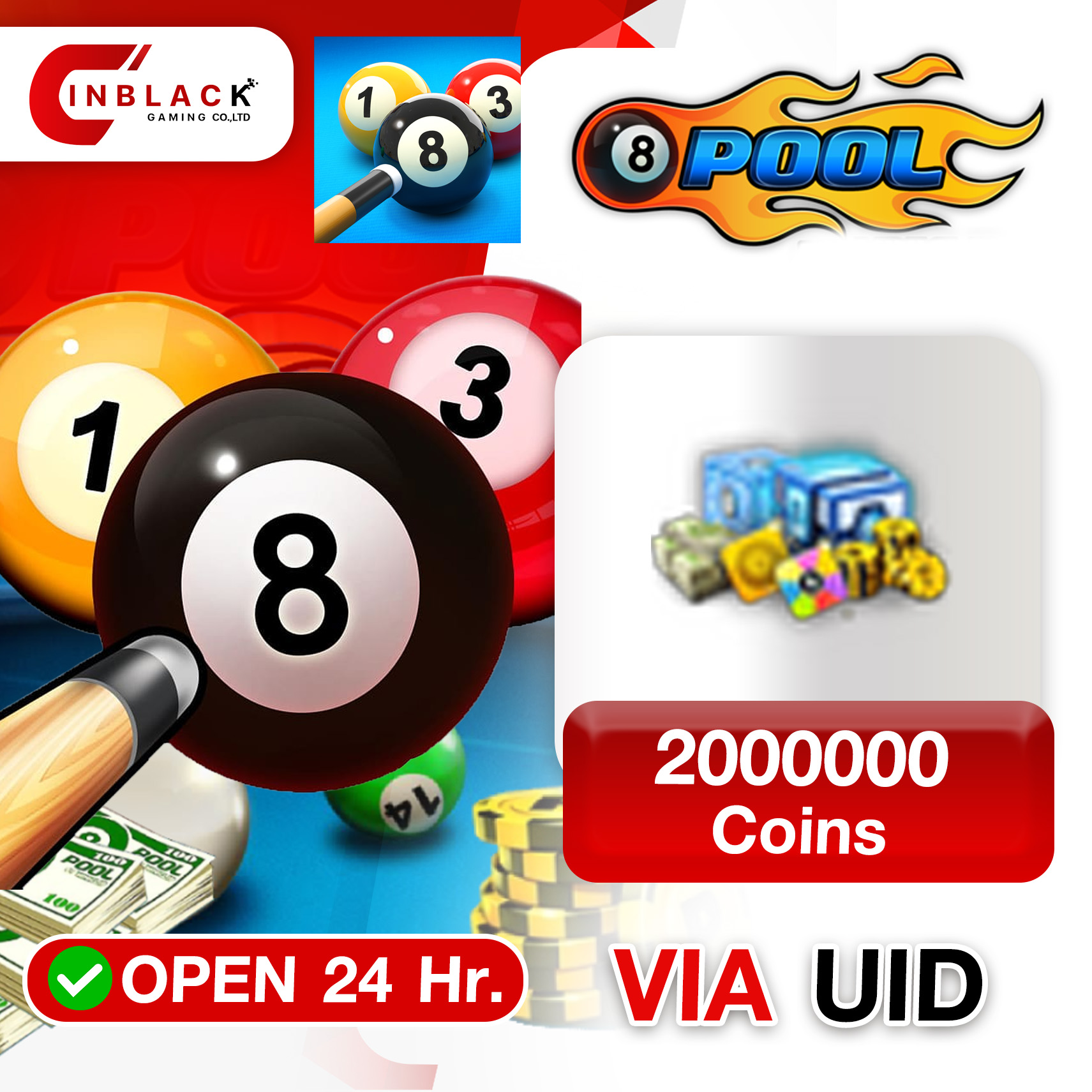 8 Ball Pool (GL) - 2000000 Coins 69.99$ Top up UID By Inblackm Open 24 hr.