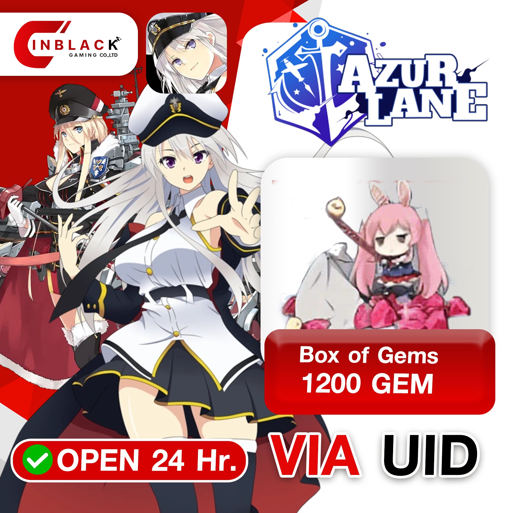 Azur Lane (Global)- Box of Gems 1200 GEM + Bonus 19.99$ ( First Time x 2 ) Top Up UID By Inblack Open 24 hr.