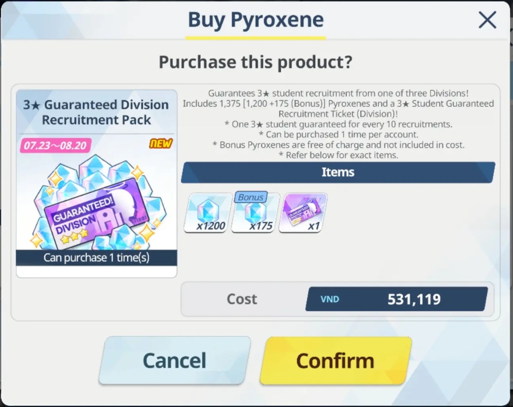 Blue Archive 3*Guaranteed Division Recruitment Pack