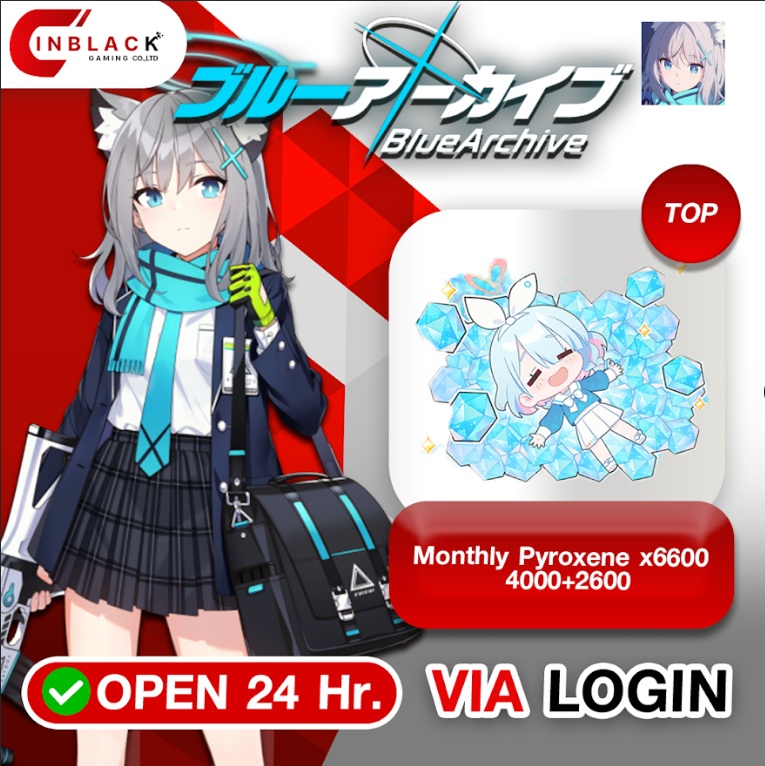 Blue Archives (GL) - Monthly Pyroxene x6600 4000+2600 (Bonus) Top Up via Login by Inblackm open 24 hr.