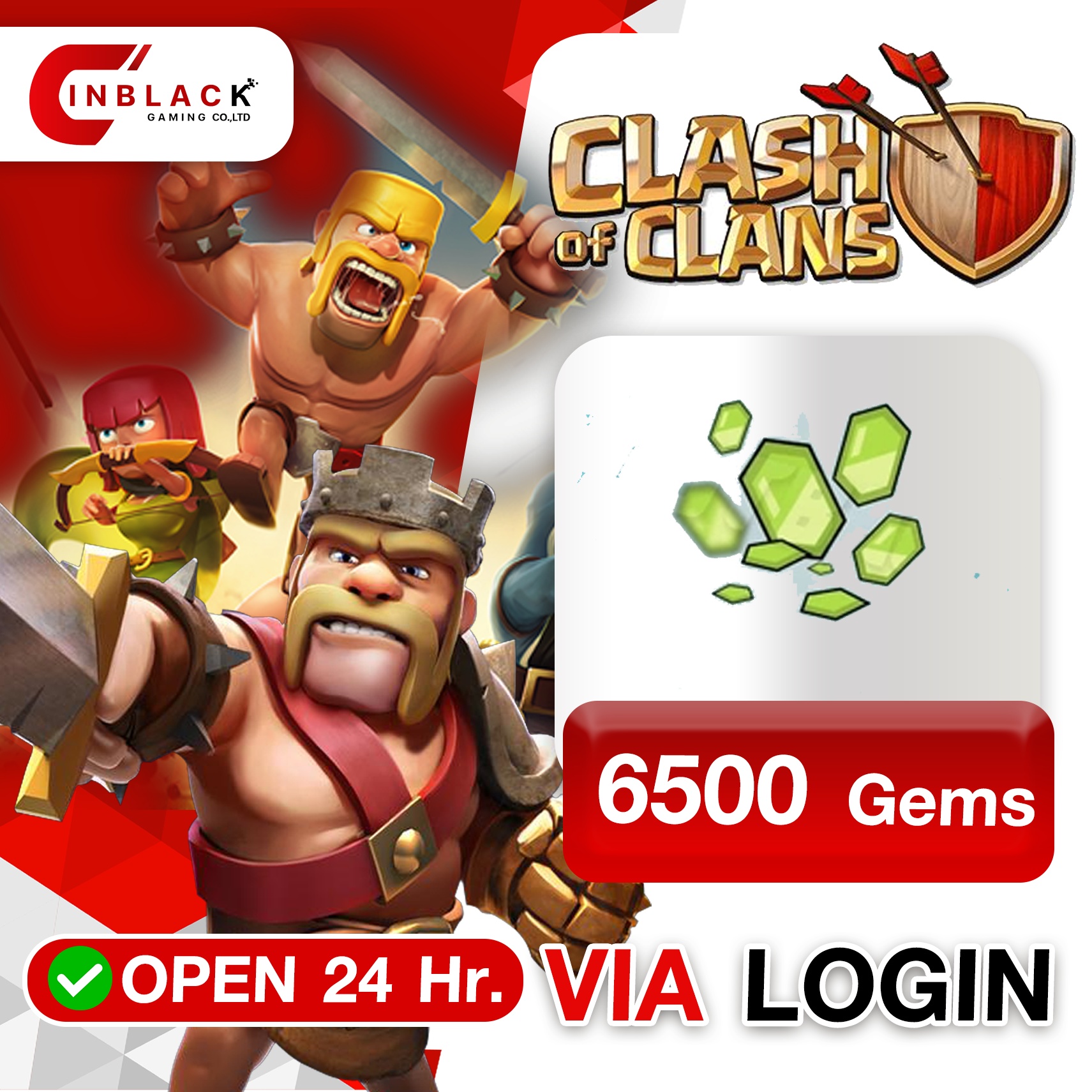CLASH OF CLANS - 6500 Gems ( 49.99$ ) Top up via LOGIN By Inblack Open 24 hr.