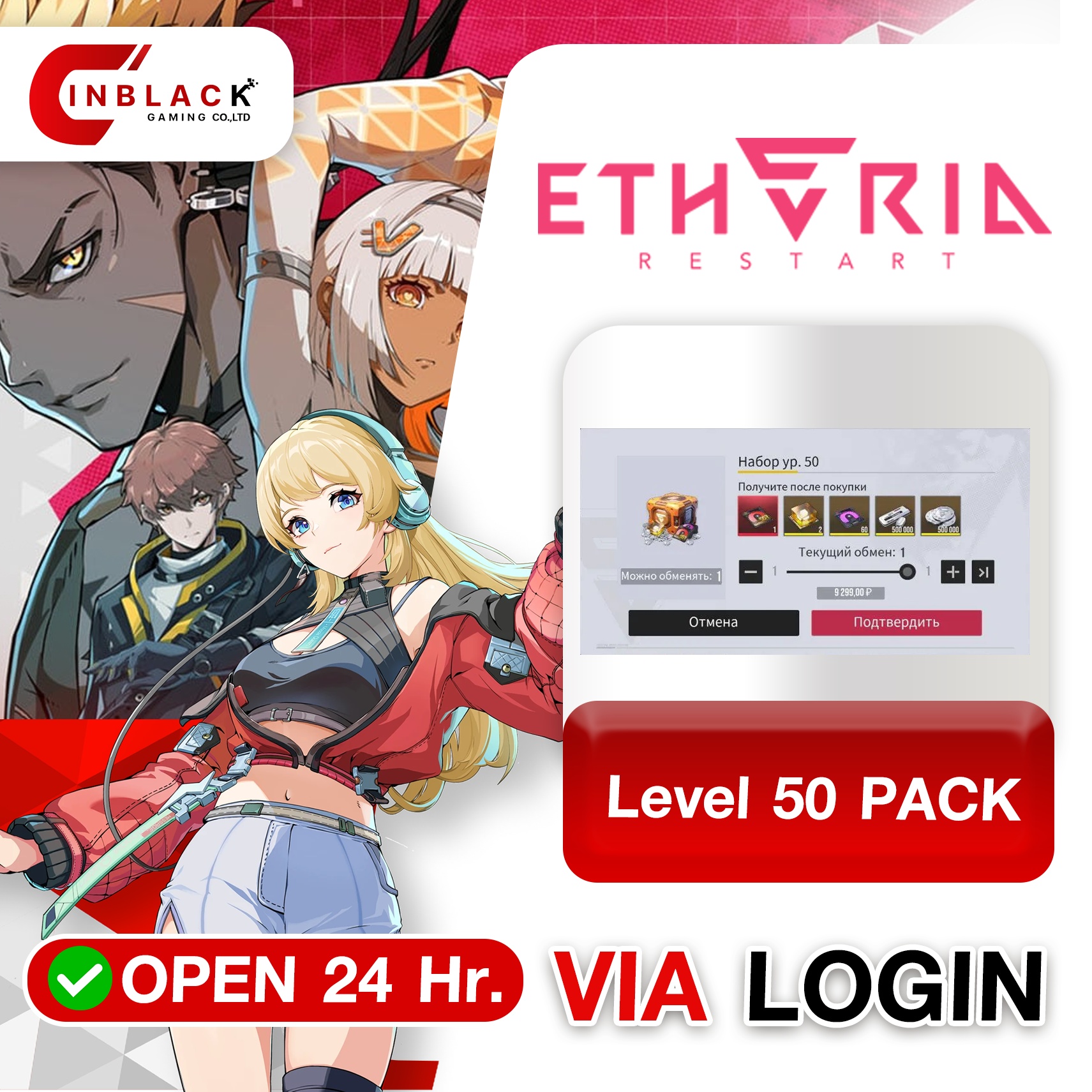 Etheria: Restart - Level 50 PACK ( 99.99$ ) Top up Via LOG IN By Inblack Open 24 hr.