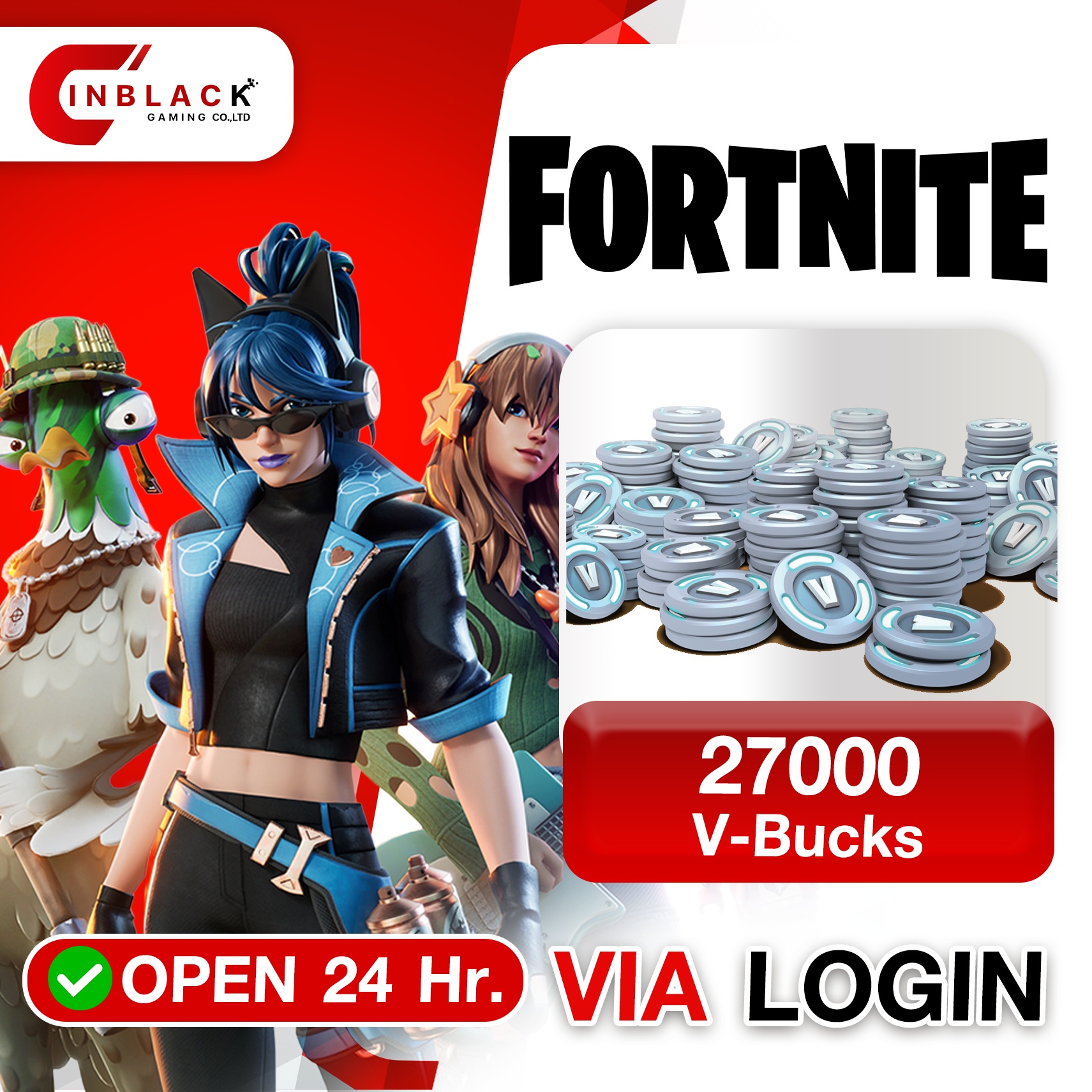 Fortnite (GL) - 27000 V - Bucks Top up Via LOGIN By Inblackm Open 24 hr.