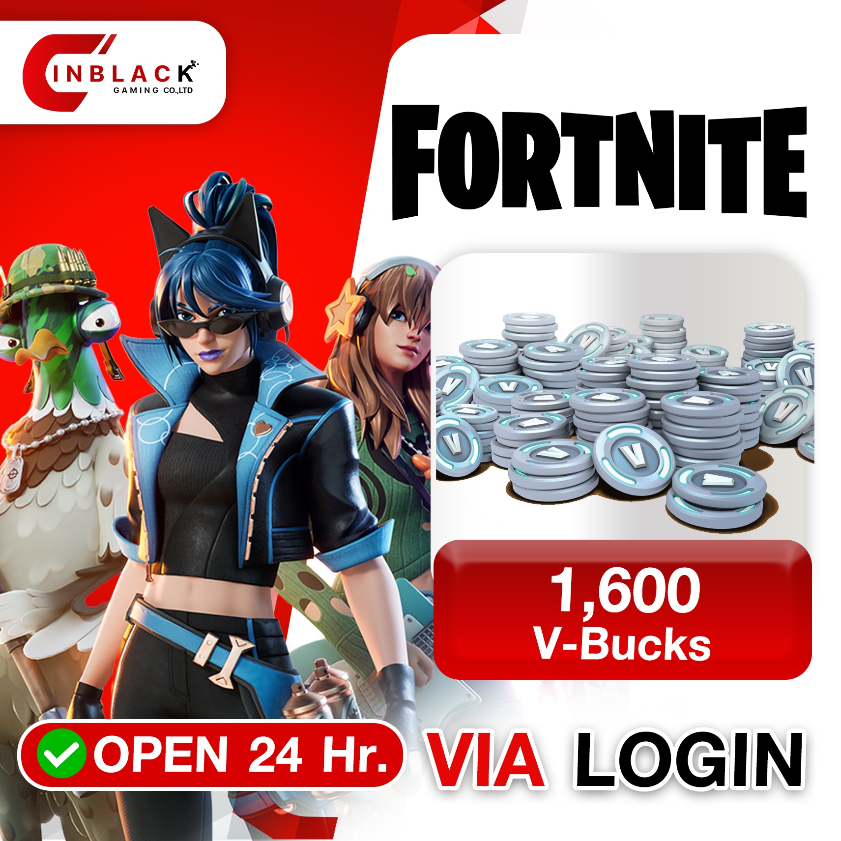 Fortnite (GL) - 1600 V - Bucks Top up Via LOGIN By Inblackm Open 24 hr.