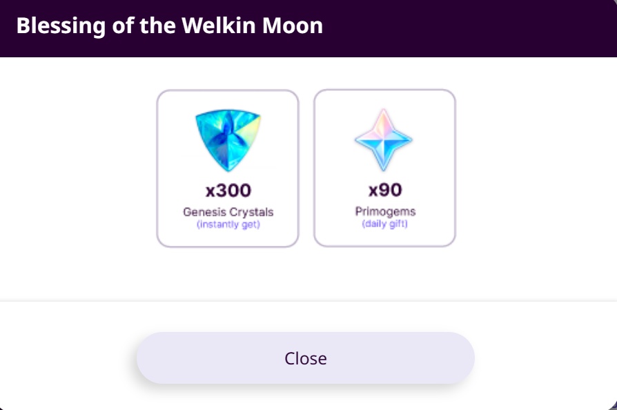 - Once the top up is done, you will receive the Blessing of the Welkin Moon immediately.