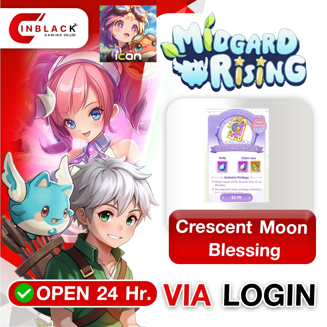 Midgard Rising (SEA) - Crescent Moon Blessing 3.99$ Top Up Via Login By Inblackm Open 24 hr.