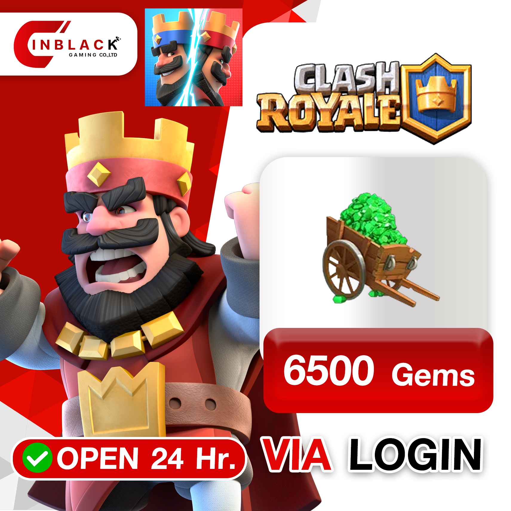 CLASH ROYALE - 6500 Gems ( 49.99$ ) Top up via LOGIN By Inblack Open 24 hr.