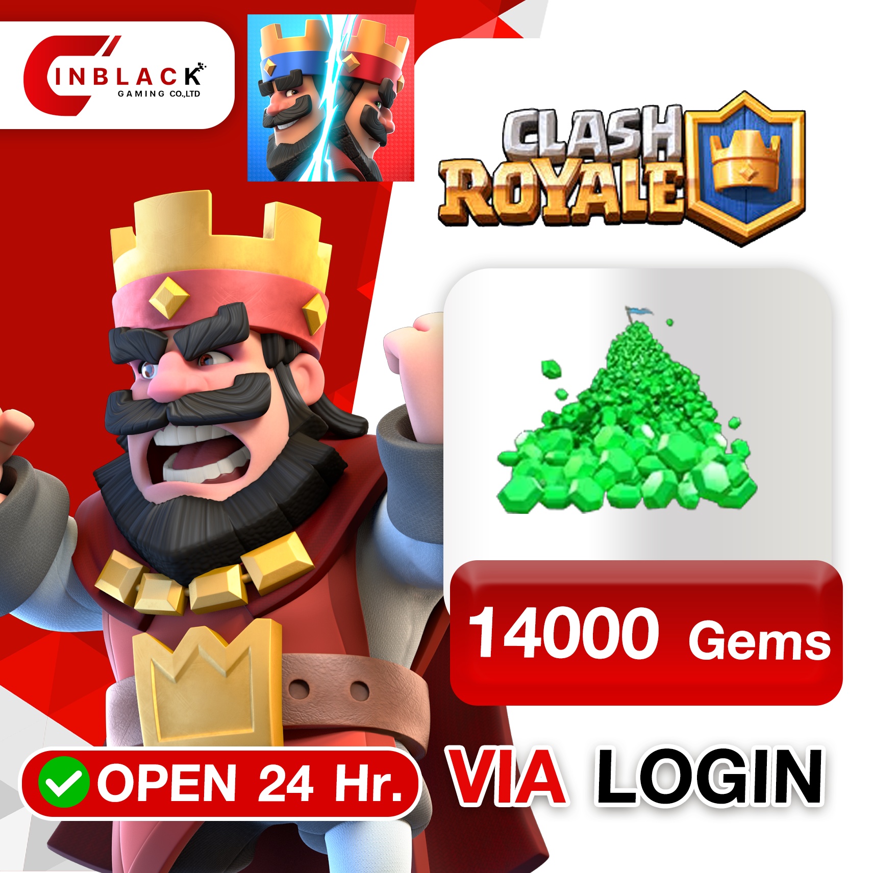 CLASH ROYALE - 14000 Gems ( 99.99$ ) Top up via LOGIN By Inblack Open 24 hr.