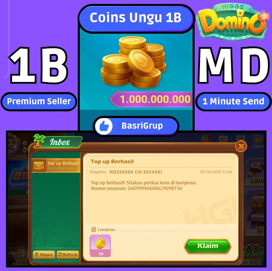 1B Coins Ungu MD - Higgs Domino HDI or Higgs Games Island HGI - Claim Coins INBOX Without Card Exchange - Fastest Delivery & Trusted - Basri Grup