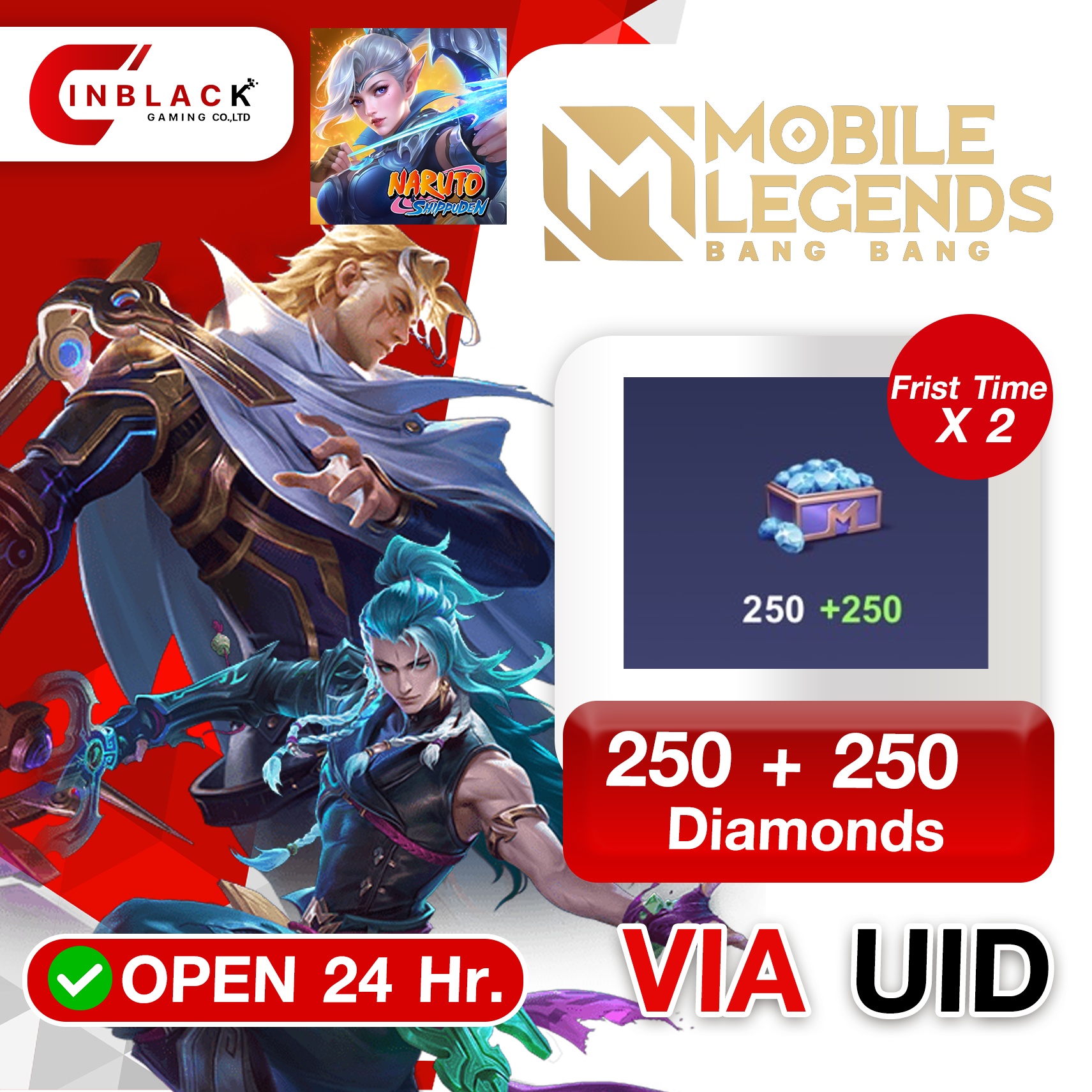 Mobile Legends: Bang Bang (Philippines) - 250 + 250 (Frist Time X 2) Top up UID By inblack Open 24 hr.