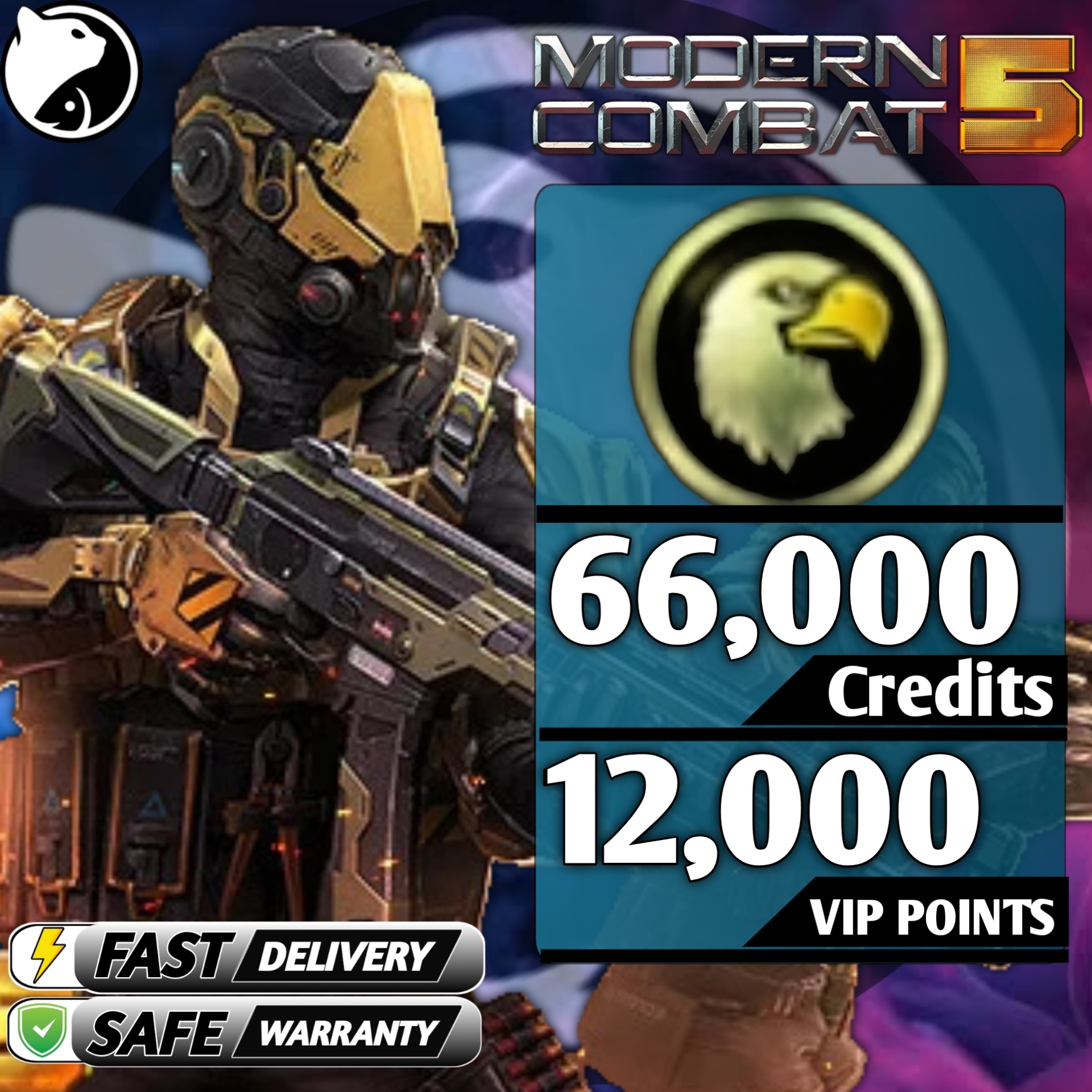 Modern Combat 5: eSports FPS GL / Mobile ✅ FAST DELIVERY ✅ 66,000 Credits + 12,000 VIP Points - Via : GAMELOFT ID (GLOBAL)