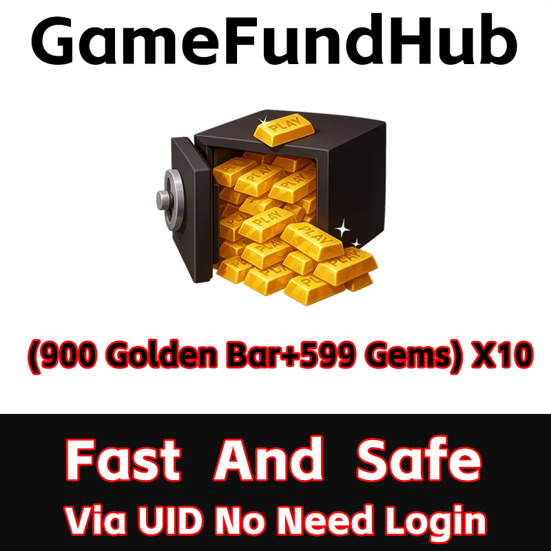 (900 Golden Bar+599 Gems) *10(Via UID No Need Login/No need Password)Fast And Safe