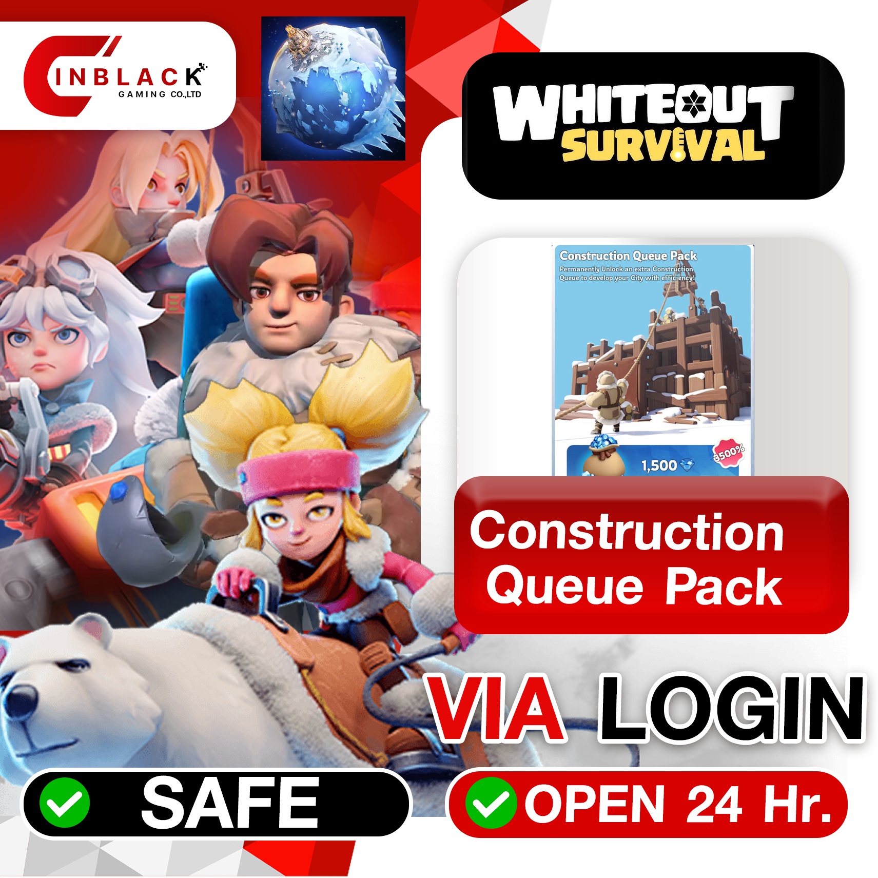 Whiteout Survival (GL) - Construction Queue Pack 2.99$ Top up Via LOGIN By Inblack Open 24 hr.
