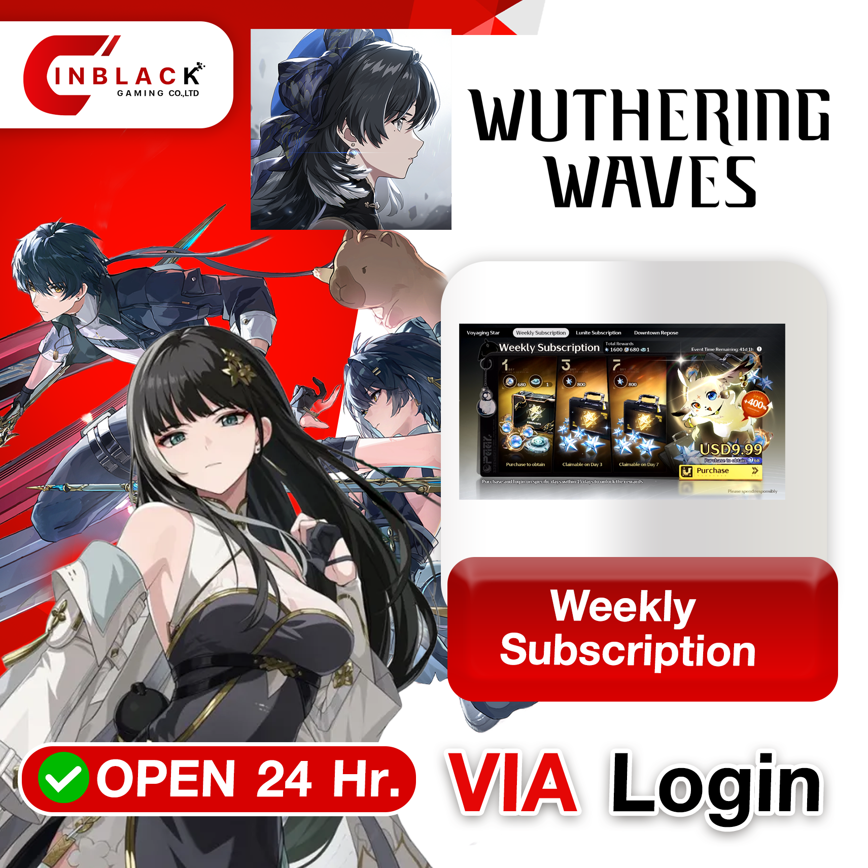 Wuthering Waves - Weekly Subscription ( 9.99 USD ) Via Login by Inblackm open 24 hr.