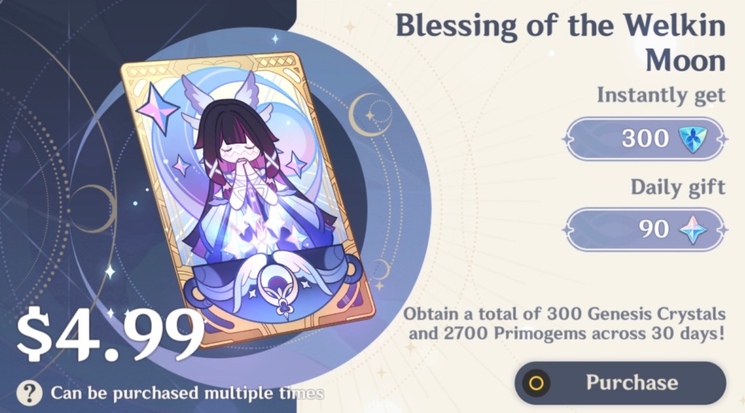 Genshin Impact - Blessing of the Welkin Moon (LOGIN METHOD) **Need Account & Password to login**