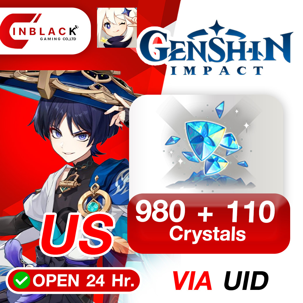 Genshin Impact (US) - 980 + 110 Crystal Top up UID By Inblackm Open 24 hr.