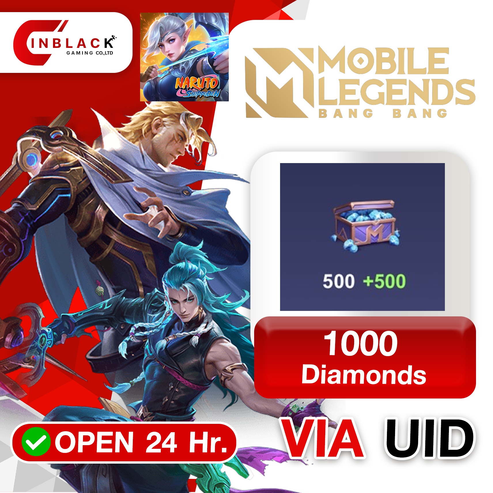 Mobile Legends: Bang Bang (Philippines) - 1000 Diamonds ( 500+500 First Recharge ) Top up UID By inblack Open 24 hr.