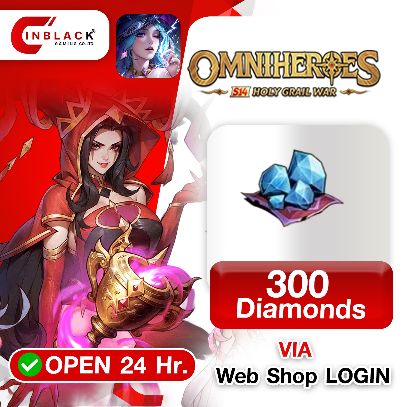 Omniheroes (GL) - 300 Diamonds 4.99$ Top up Web Shop LOGIN By Inblackm Open 24 hr.