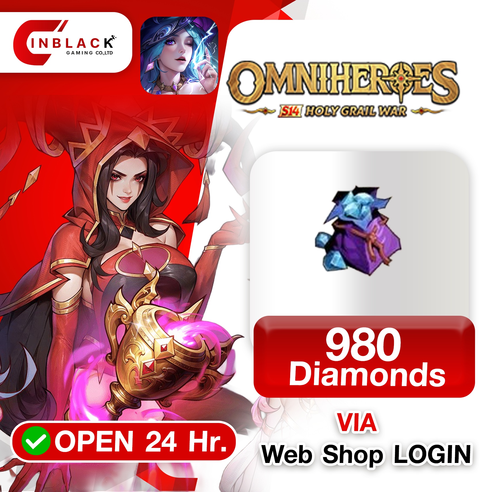 Omniheroes (GL) - 980 Diamonds 14.99$ Top up Web Shop LOGIN By Inblackm Open 24 hr.