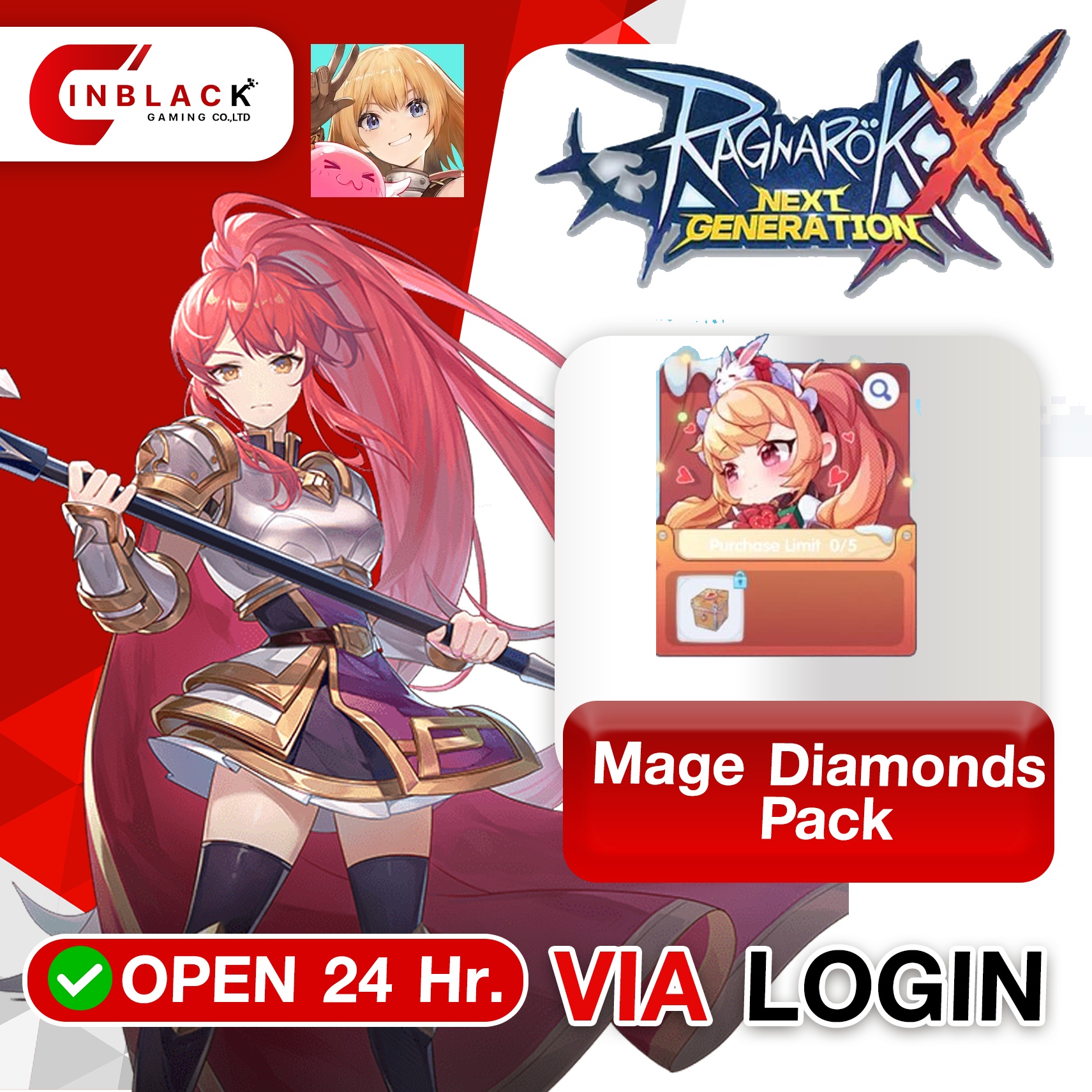 Ragnarok X (Global) - Mage Diamonds Pack 19.99$ Top up Via LOGIN By Inblack Open 24 hr.