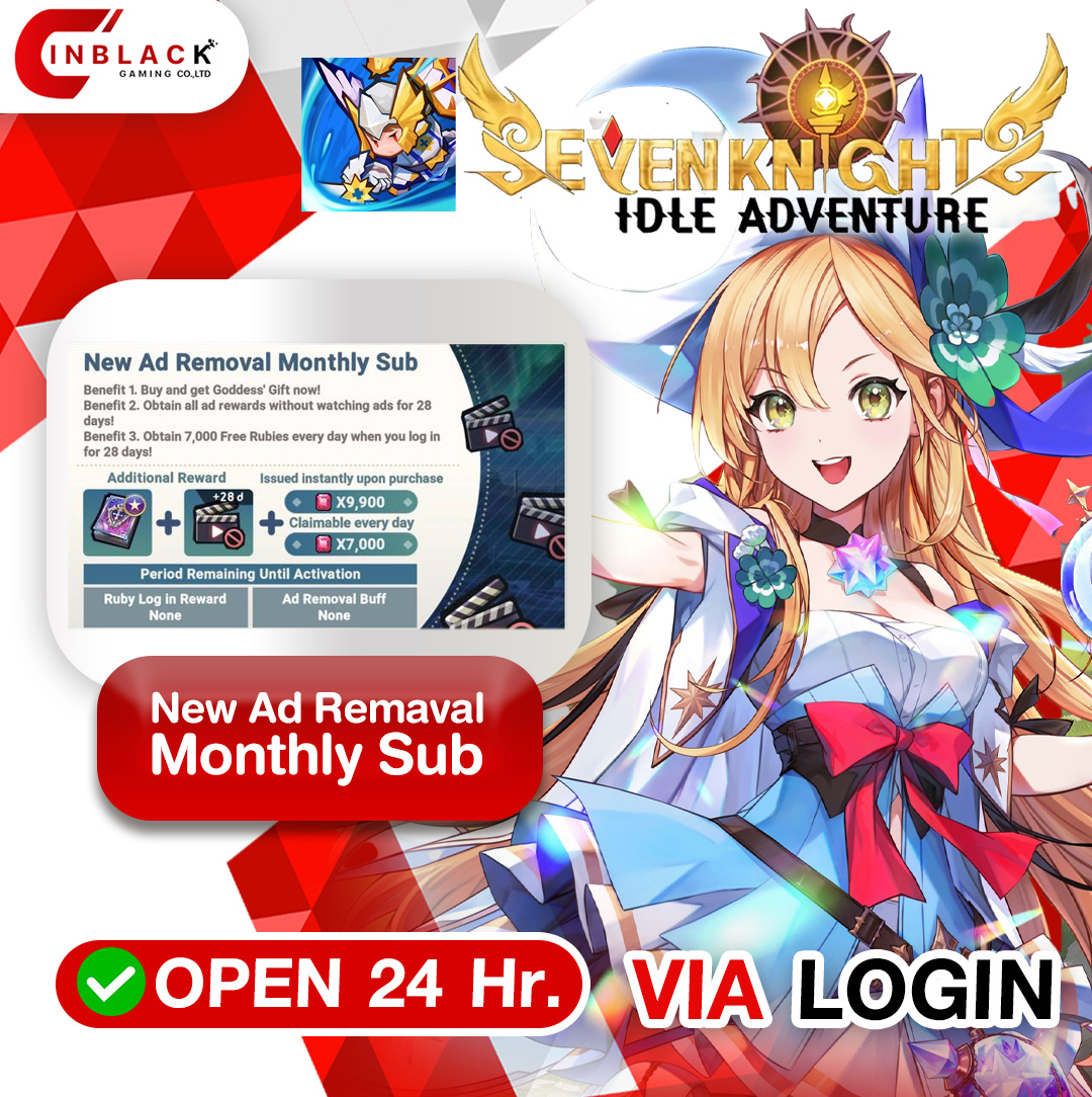 Seven Knights Idle Adventure - New Ad Remaval Monthly Sub 6.99$ Top up via Login By Inblackm Open 24 hr.