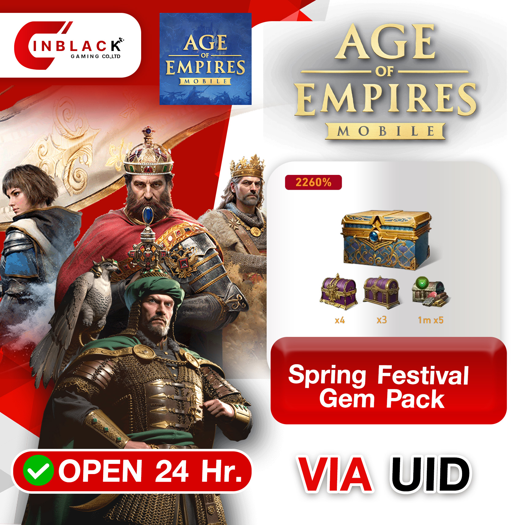 Age of Empires Mobile (GL) - Spring Festival Gem Pack 4.99$ Top up UID By Inblack Open 24 hr.