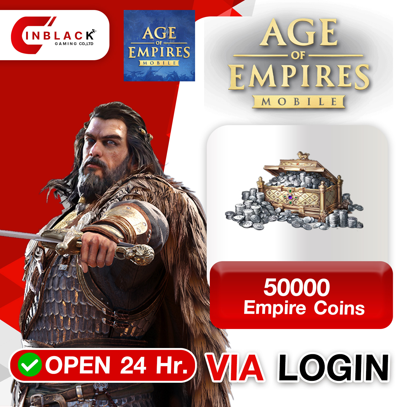 Age of Empires Mobile (GL) - 50000 Empire Coins 99.99$ Top up Via Login By Inblack Open 24 hr.