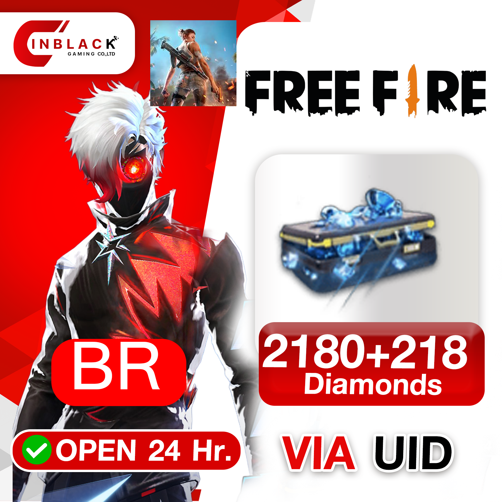 Free Fire (BR) - 2180+218 Diamond Top up UID By Inblackm Open 24 hr.