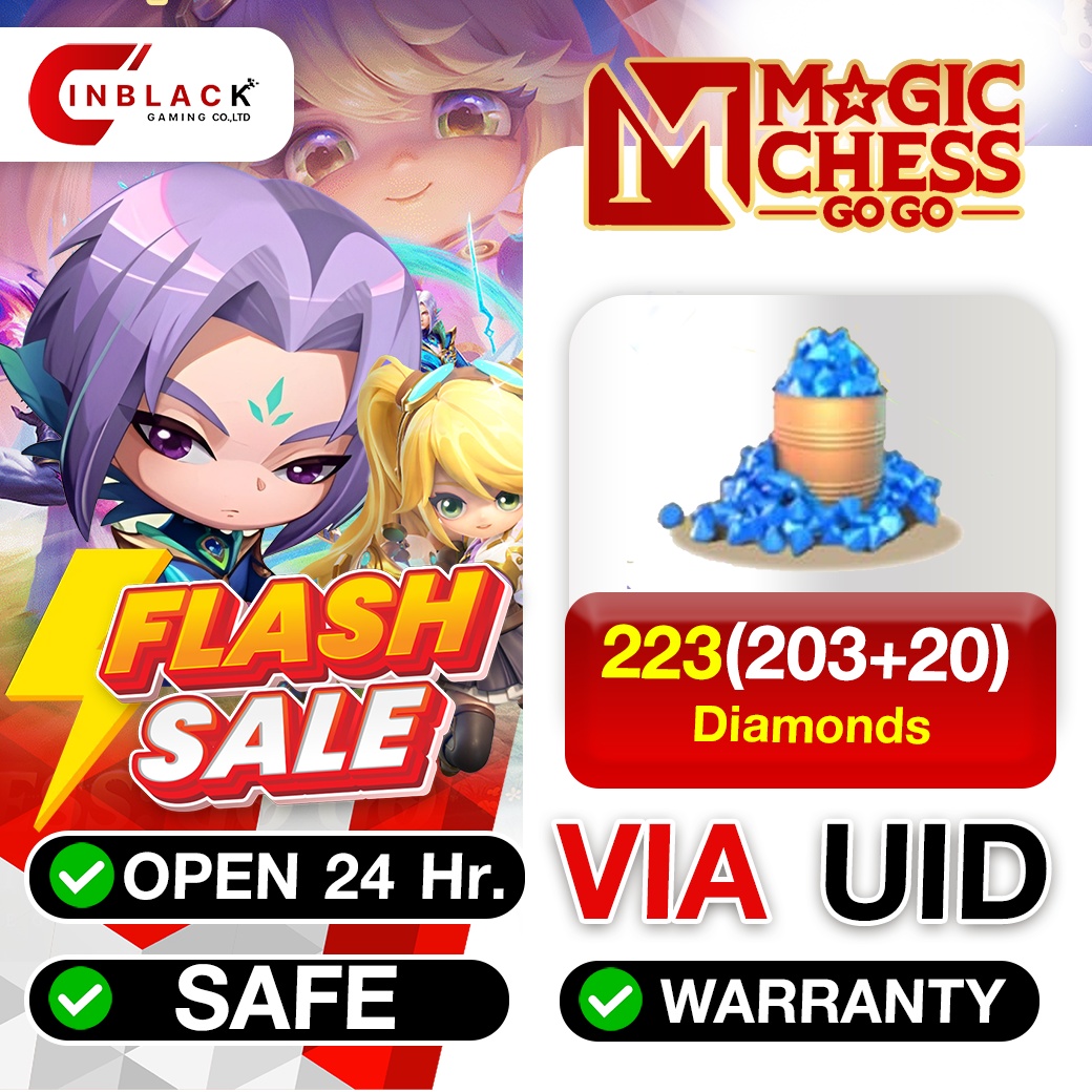 Magic Chess: Go Go - 223 ( 203+20 ) Diamonds via UID by Inblackm open 24 hr.