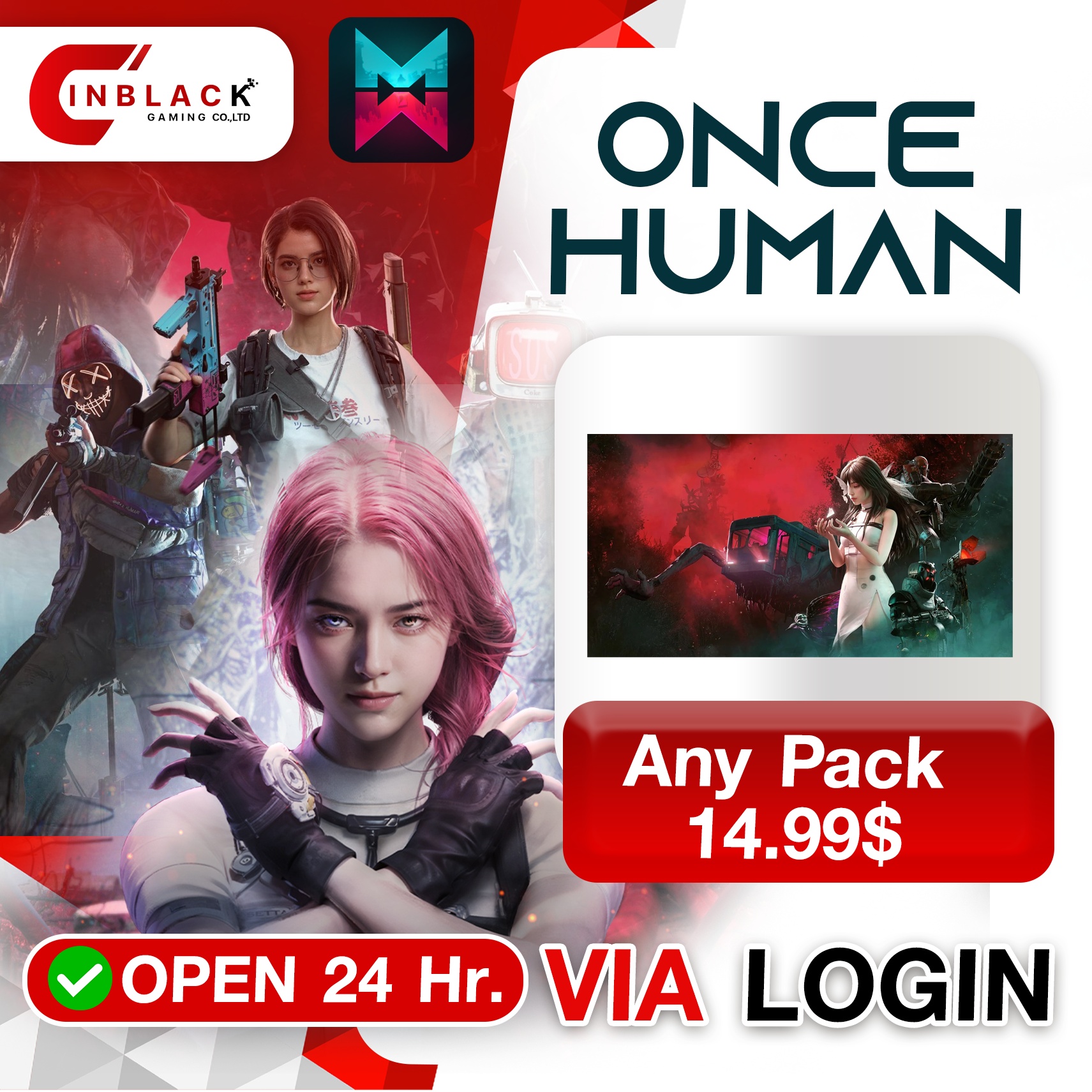 ONCE HUMAN - Any Pack 14.99$ Top up Via Login By Inblackm Open 24 hr.