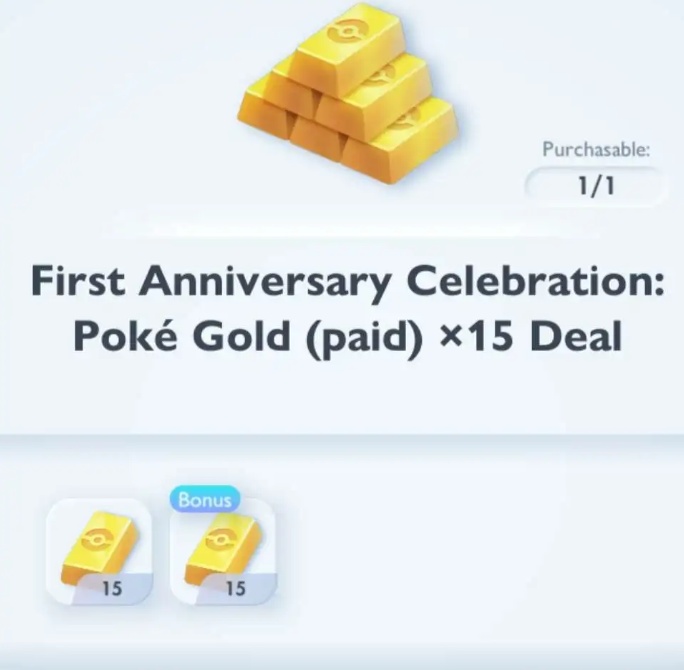 Pokemon TCG Pocket Topup First Anniversary Celebration:poke Gold (paid)x15 deal