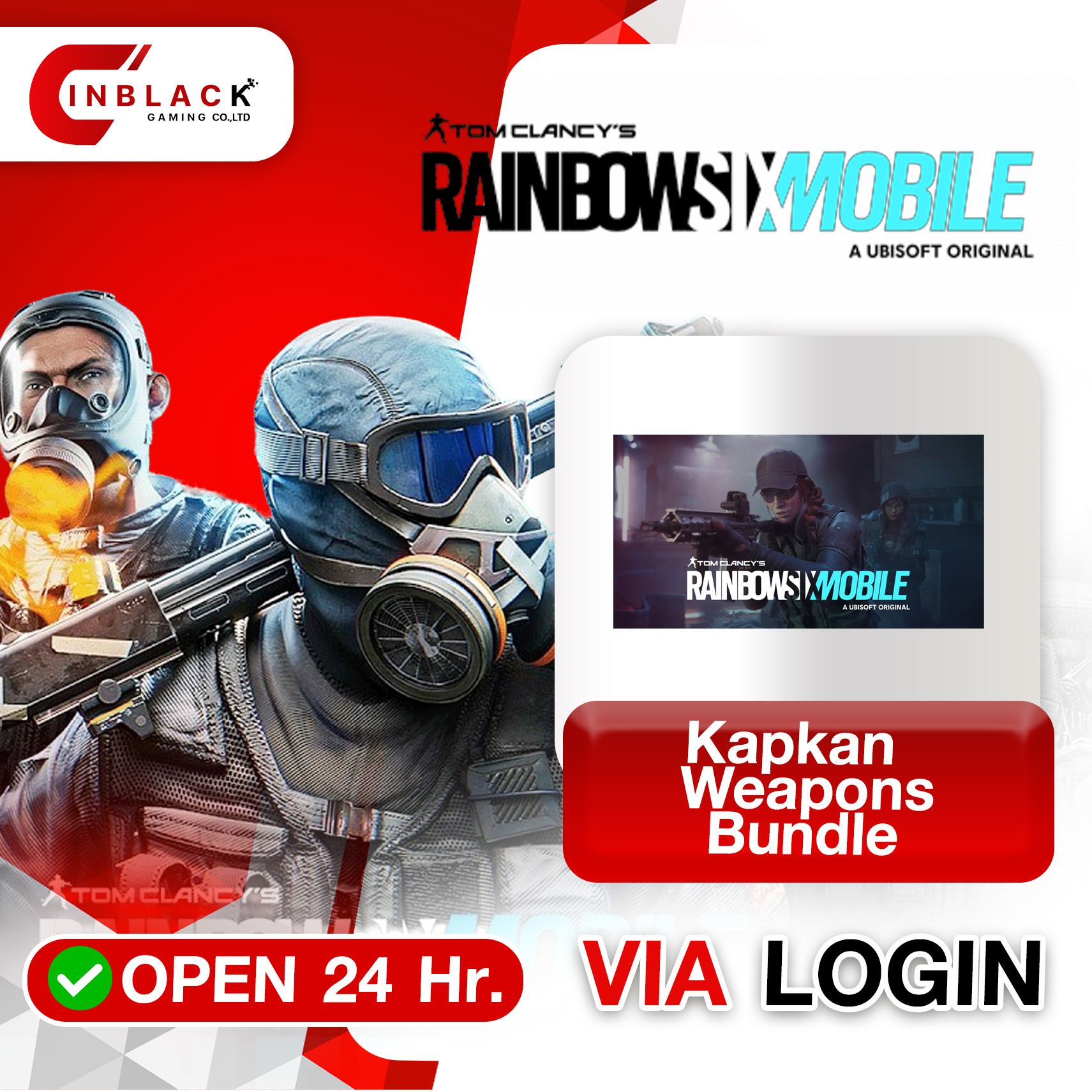 Rainbow Six Mobile (GL) - Kapkan - Weapons - Bundle 1.99$ Top up via LOGIN By Inblackm Open 24 hr.